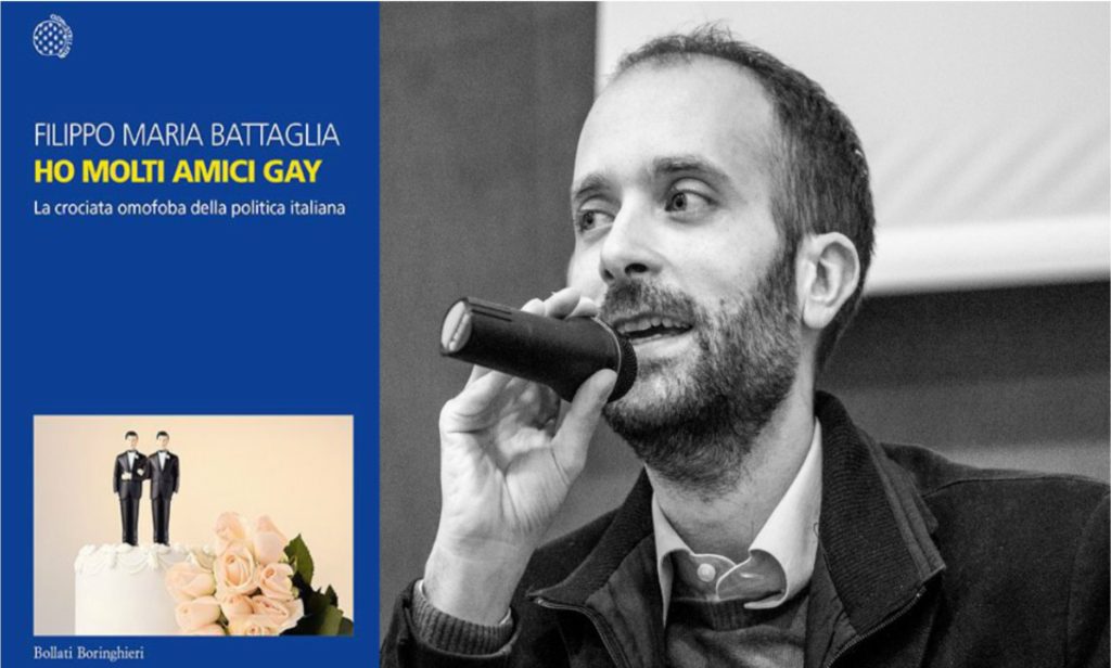 A raccontare la “crociata omofoba dei politici italiani” portata avanti in modo trasversale dal dopoguerra a oggi e settant’anni di battute, insulti e decisioni discriminatorie andate in scena nei teatri della politica, è Filippo Maria Battaglia, giornalista e scrittore con il suo ultimo libro, Ho molti amici gay (Bollati Boringhieri) che già dal titolo, ironico e tagliente, sottolinea come l’affermazione sia generalmente la premessa-alibi con cui gli omofobi di casa nostra da sempre aprono, in privato o nelle aule parlamentari, i loro interventi mirati a legittimare le loro azioni. Il retro pensiero è sempre lo stesso: nei decenni trascorsi, ma in gran parte ancora oggi, gli omosessuali non sono ben visti né come insegnanti, né come capi scout, né come medici, né come operatori sanitari. E, soprattutto, mai e poi mai, alle persone dello stesso sesso è concesso lasciarsi andare a effusioni affettive in pubblico.